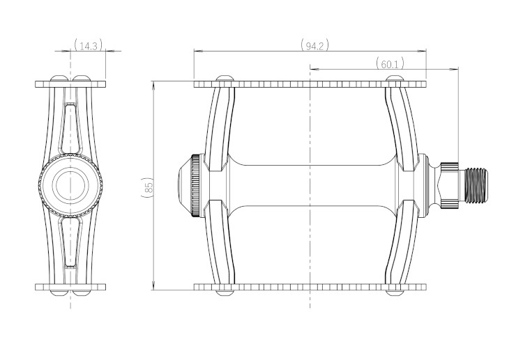 Maintaining the same width of the Sylvan touring, we have increased the length of the pedal body allowing for a large comfortable platform for the rider to firmly rest their feet. This pedal is ideal for those looking for a comfortable ride, as well as those with large legs or shoes. Like the Sylvan touring, the cage plate tooth profile is grippy, but not particularly aggressive.